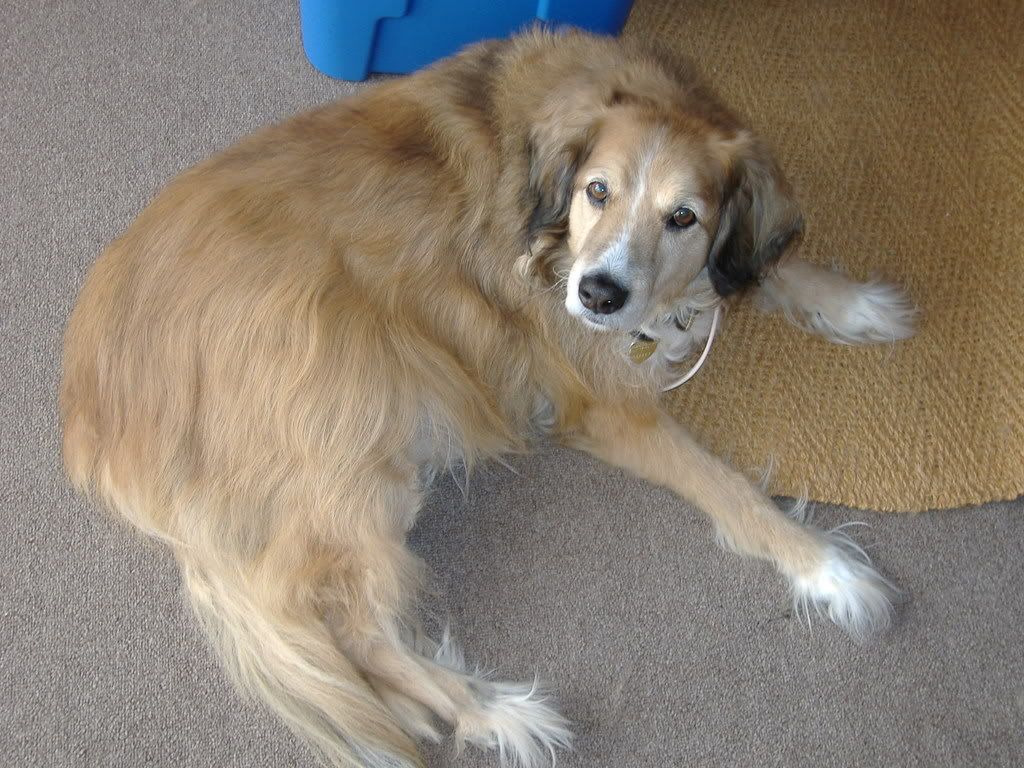 I have one dog. His name is Nuzzle. And his middle name is Elmo, because that's what his name used to be before we got him. He's part border collie, part Afghan hound and he was born September 15, 1994. He's not a biter, but if someone he cares about is in trouble, he is. This is my puppy-wuppy!  :D